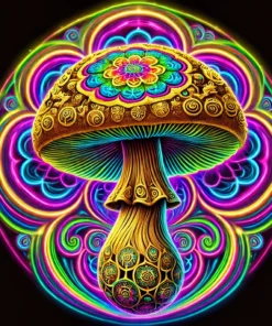 Dompel jezelf onder in de mysterieuze wereld van paddenstoelen met onze hoogwaardige Golden Teacher sporenprint.